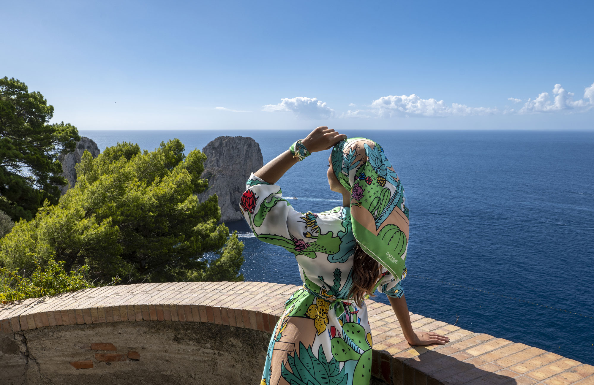 Dalle atmosfere fiorite e lussureggianti di Sanremo, alle acque cristalline e le scogliere iconiche di Capri, ogni capo si integra perfettamente nell’ambiente, creando un’esperienza visiva senza precedenti.