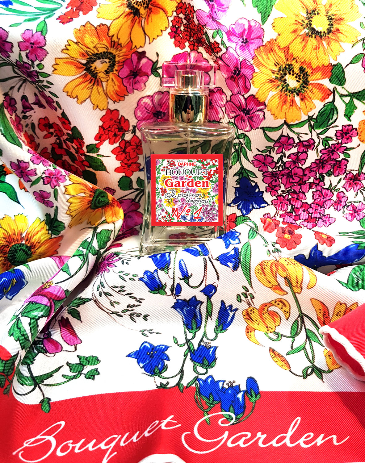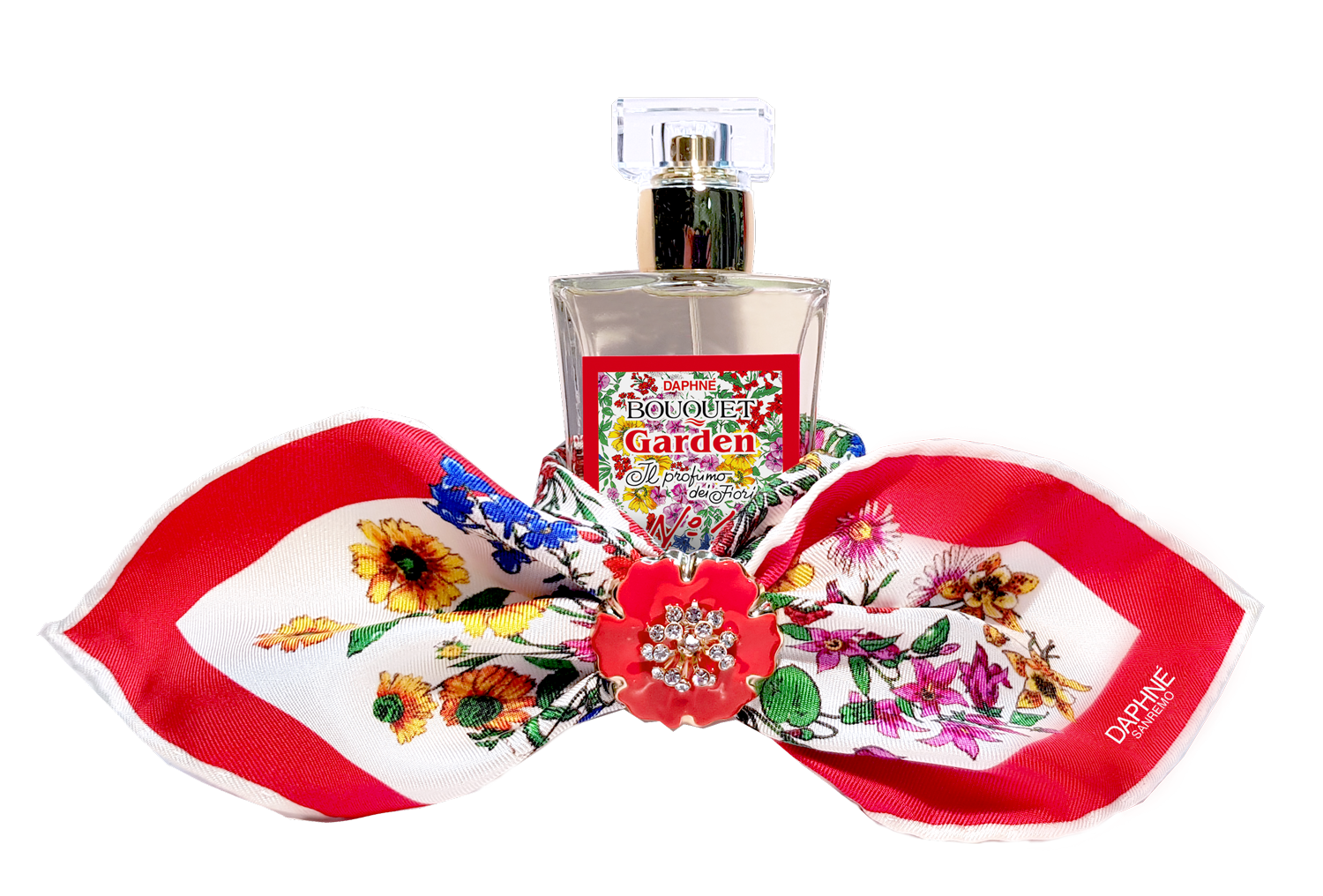 E per aggiungere un tocco unico, sul foulard e sul bracciale una spruzzata di Eau de parfum Bouquet Garden n° 1 vi trasporterà in un campo fiorito.