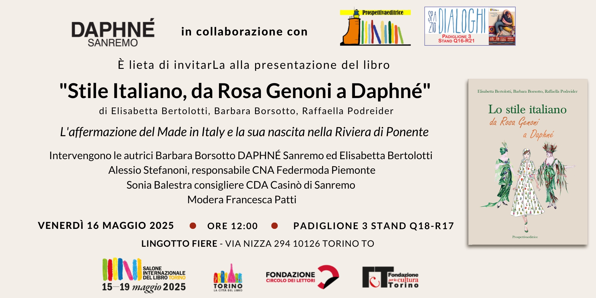 Presso lo Spazio Dialoghi in collaborazione con Prospettiva Editrice la Maison sanremese ha presentato al pubblico del salone internazionale del libro il volume “Stile Italiano, da Rosa Genoni ad Oggi”