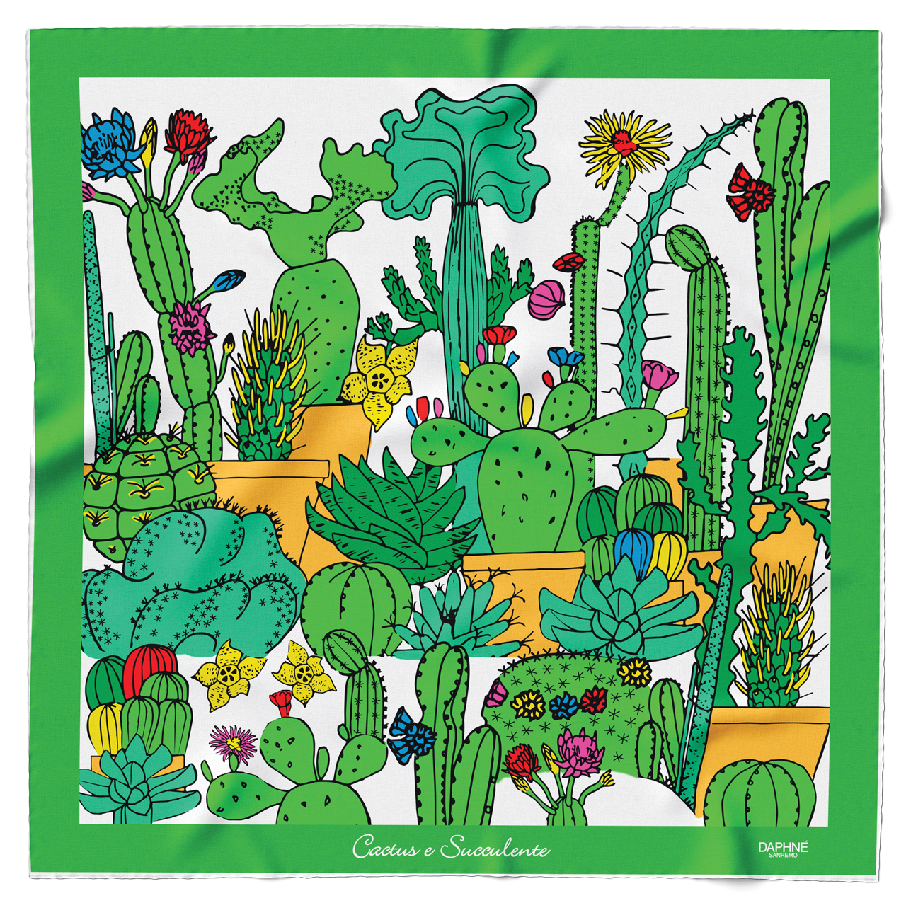 Il lato esotico della Liguria impresso su seta, Cactus e Succulente in un foulard che esalta la bellezza delle eccellenze del territorio.