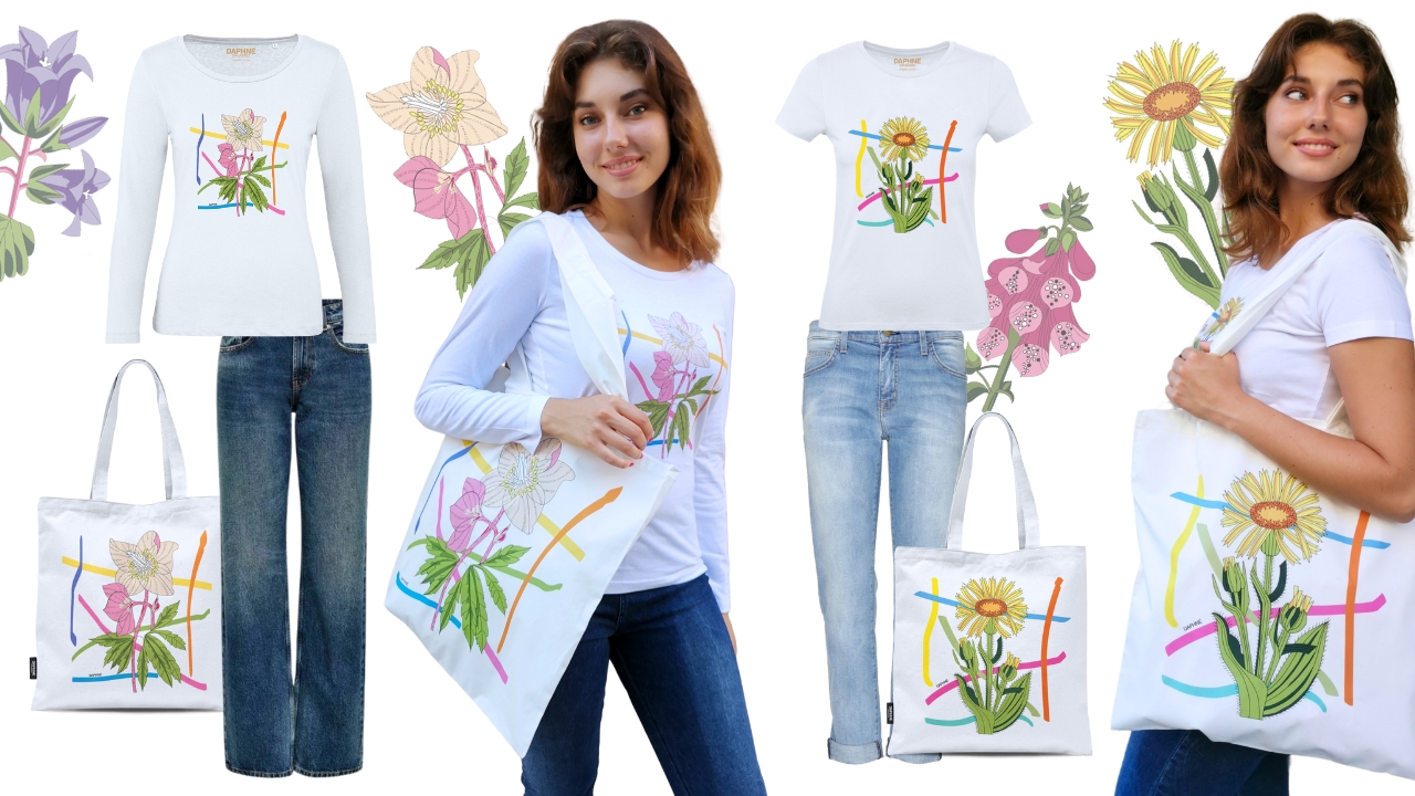 Una T-shirt dei fiori DAPHNE può essere il mezzo perfetto per mandare un messaggio, DAPHNÉ Sanremo gioca con il mix and match abbinando pezzi a contrasto, s’indossa in ufficio sotto un blazer, con un jeans e una snaker per una passeggiata o ancora con una gonna lunga per una serata elegante, diventando dei veri CULT sartoriali, da portare con il foulard abbinato al collo o in testa come segno distintivo e di personalità, perchè un capo bello dura tutta una vita.